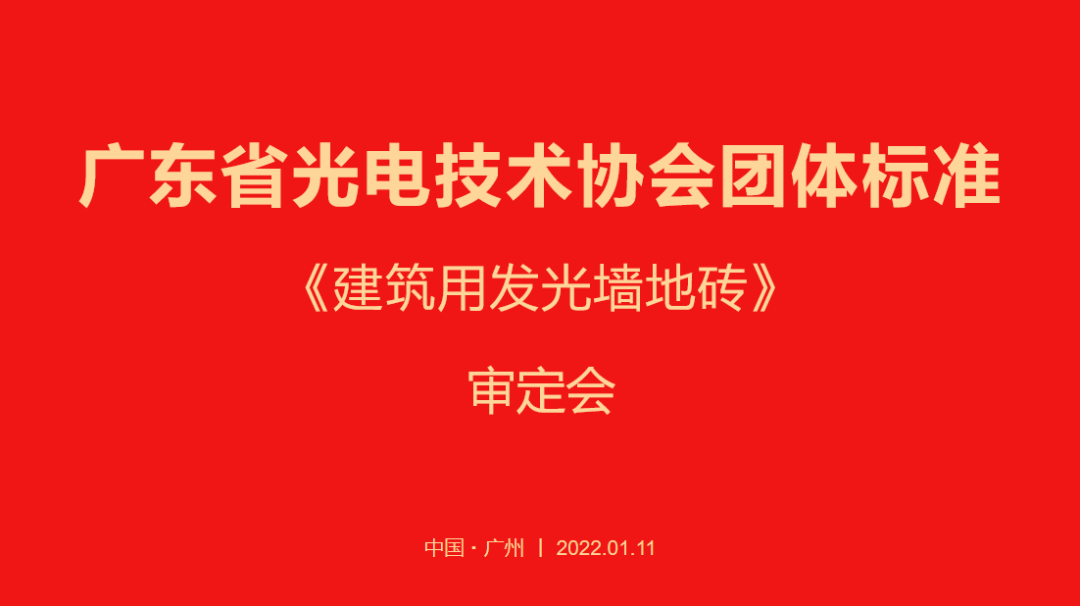 2022年1月11日,由广东省光电技术协会组织的《建筑用发光墙地砖》团体标准审定会在金颖大厦三楼会议室成功召开,20多位专家和企业代表参加了会议。