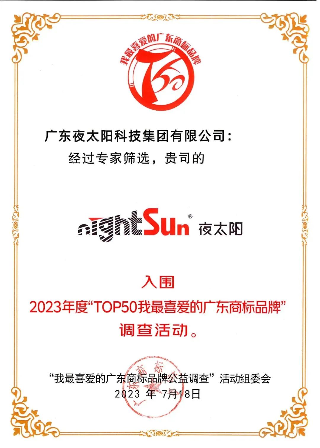 “我最喜爱的广东商标品牌”公益调查活动至今已成功举办两届,活动启动迅速引起了全国499家媒体的广泛关注和报道。其中包括人民日报、中国企业报、新华社等国家级媒体,以及各省市的主流媒体和新媒体平台。截至活动结束,总投票量达44299350,访问量更是高达63611407。夜太阳集团“nightSun夜太阳”商标此次成功入选“TOP50我最喜爱的广东商标品牌”,作为不直接对C端的灯光源头厂家获得此荣誉,说明夜太阳在从1.0时代迈入3.5时代过程中,不止是夯实制造功底,在务虚层面也在探索、进步。