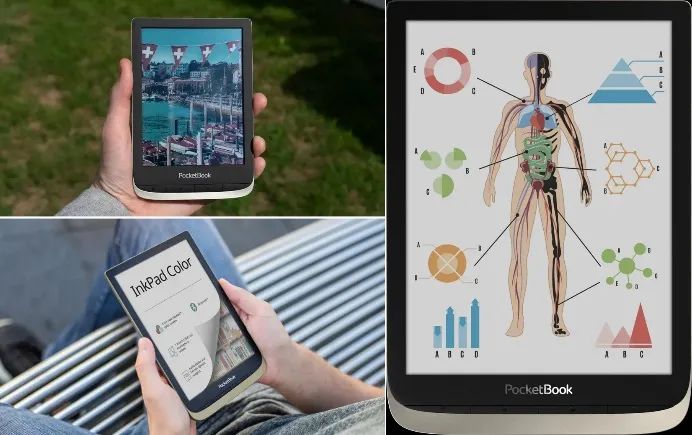 例如,彩色电子纸产品PocketBook 已经进入市场,其E Ink Kaleido 屏幕在明亮的灯光下看起来更清晰,颜色在明亮的阳光下看起来特别饱和(图3)。